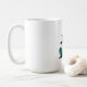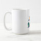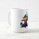 Une tasse à café avec une illustration d'halloween cool. Un grand épouvantail avec une tête de citrouille, portant un casquette de sorcières. Il a un sourire menaçant portant des robes en lambeaux et se tient dans un cimetière avec un corbeau qui crie sur son bras. Les chauves-souris qui volent au loin, une pleine lune dans l'arrière - plan et un hibou solitaire aux yeux brillants se trouvent sur une pierre tombale.