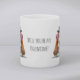 This adorable basset hound-type puppy wants to know "Will you be my Valentine?" There are two images, one on each side of the mug. Text is in between the images and can be changed. AI assisted graphic purchased with commercial use. Artwork: RedHeronLighthouse
