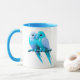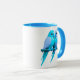 Mug hat hellblaue Vögel. Tasse