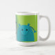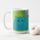 Un joli hippopotame bleu sur un arrière - plan bleu et vert ombragé. Admirez votre amour pour ce grand animal, l'Hippopotame sur cette tasse de café. Le dicton Happy as a Hippo peut être changé comme souhaité.