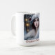 Custom Holiday mug présente une belle princesse en casquette blanc taillé en fourrure et enveloppé avec le feuillage d'hiver dans un portrait de style vintage. Un joli portrait thématique de Noël créé avec un logiciel générateur d'IA. Personnaliser le texte du message "Bonnes Fêtes" ou laisser tel quel