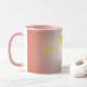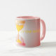 Un design épuré avec un sablier à l'échelle grise au milieu. A gauche et à droite les mots "VIE DANS LE MOMENT". La tasse a un dégradé lisse de gris clair au milieu, à travers le rose clair, à l'extérieur.. Très bien adapté comme cadeau pour une personne ou une occasion spéciale [Noël].