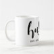 Tasse moderne branchée pour les jeunes mariés. Conception avec le "hubby" dans un script manuscrit branché et année établie. Cliquez sur customiser plus loin pour modifier ce modèle. Correspondance de la mug 'wifey' disponible.