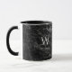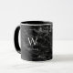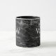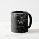 Un design moderne simple mais élégant. Sur un fond de marbre noir, il y a une grande initiale de monogramme blanc, avec le nom en dessous, également en majuscules blanches.