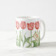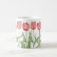 Cette tasse de café florale comporte une rangée des tulipes roses et de votre initiale décorée d'un monogramme dans le rose. Conçu par le ©Tim de renommée mondiale Coffey d'artiste.