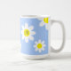 Cette adorable tasse présente des fleurs blanches avec un arrière - plan bleu clair apaisant. Des initiales uniques pour la personnalisation peuvent être placées au centre d'une fleur à l'avant et à l'arrière. C'est une tasse sucrée et heureuse à utiliser pour les boissons.