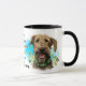 Un portrait en aquarelle d'un heureux chien irlandais Wolfhound est la caractéristique de deux côtés de cette tasse. Chaque image est placée sur un arrière - plan bleu vif. Entre les deux images se trouve le texte qui décrit ce compagnon loyal et protecteur, avec "the IRISH WOLFOUND" en noir en bas. Tout le texte est facilement customisé à tout ce que vous préférez afin que vous puissiez décrire votre propre ami loyal.