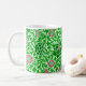 Tasse à café dans un fond d'écran William Morris design de fleurs dans émeraude profonde et vert citron, accentué de rose fuchsia, contre un arrière - plan vert pastel