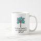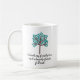 Cette tasse de café de généalogie comporte un arbre avec le feuille bleu et la légende "j'ai secoué mon arbre généalogique et un groupe d'écrous a tombé"