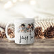 Moderne et festif, le design de la tasse de vacances comprend cinq photos carrés préférées alignées côte à côte, avec "joie pour le monde" sous une lettre manuscrite chic.
