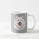 Cette tasse à café présente une image AI d'un bel heureux samoyé sur arrière - plan gris. Personnalisez-la photo de votre animal de compagnie.