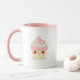 Joli cupcake avec visage souriant, glaçage rose et menthe, fleurs, paillettes, cœur sur le dessus, étoiles et étincelles.