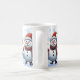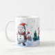 Corps rond et rond, associé à un sourire amical et des yeux de charbon noir. Portant un casquette de Noël rouge et une écharpe colorée, ajoutant une touche festive.