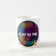 La conception de la tasse comporte l'expression "Jouer pour s'évader" qui apparaît clairement dans la typographie audacieuse et dynamique. Les mots sont placés contre un arrière - plan dynamique et abstrait qui suggère l'aventure et l'excitation. Le design général traduit un sentiment de liberté, de plaisir et de puissance du jeu pour vous transporter dans un monde différent.