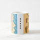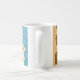 Tasse à café avec scène de plage, empreintes dans le sable à côté d'une vague. Grande tasse de vacances d'été avec texte remplaçable "Plage".