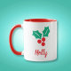 Mug Joyeuses Vacances Rouge Blanc Vert Holly Nom perso