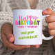 Joyeuse tasse d'anniversaire que vous pouvez personnaliser pour n'importe quel enfant, enseignant ou jeune à coeur ami ou relation. Vous pouvez également ajouter votre propre texte personnalisé comme "et bonjour trente" ou "vous êtes le meilleur" par exemple. Le design a des bougies colorées en lettré dans la jolie et lunatique typographie rétro super en rose, violet, vert citron, bleu turquoise et jaune.