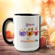 Commencez vos matins par un tour festif en utilisant notre tasse à deux tons "Hallowthanxsmas"! Cette tasse joyeuse comporte trois tasses à café vibrantes, chacune avec un empreinte de patte mignon, symbolisant le mélange d'Halloween, Thanksgiving et Noël. Le design lumineux et coloré apportera un sourire à votre visage, ajoutant une touche d'esprit de vacances à votre café ou thé quotidien. Customisez les couleurs à votre goût. Parfait pour déguster votre boisson chaude préférée, cette tasse fait un cadeau merveilleux pour vous-même ou pour un proche qui aime célébrer la saison des fêtes en style!