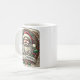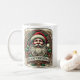 Une tasse festive avec un emblème sur le thème de Noël avec le Père Noël, les feuilles saints et les motifs de vacances classiques, parfait pour répandre la joie saisonnière avec chaque gorgée.