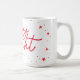 Cette Mug de Noël élégante et moderne présente un élégant script de calligraphie moderne dans les étoiles rouges et la neige. Ajoutez votre texte pré-imprimé à l'intérieur ou supprimez l'exemple de texte pour le garder vide pour votre note manuscrite.