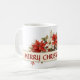 Joyeux papa papa Mug. Un ruban crème avec le texte : Joyeux papa de Noël avec une aquarelle de Poinsettias blanc et rouge, baies Holly et feuillage. Facultatif pour Customiser le texte. C'est un cadeau de Noël parfait avec des fleurs hivernales intemporelles qu'il peut utiliser année après année. Donnez à votre père une tasse préférée pour la saison des Fêtes.