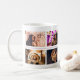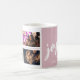 Joyeux Script Blush Pink 4 Photo Collage Conserve Mug Café. Joyeux script dans un script blanc tendance. Ajoutez vos 4 photos et customisez le texte sur la tasse ou effacez-le. Les fêtes de Noël restent bonnes pour votre famille et vos amis.