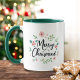 Joyeux script de Noël Aquarelle Floral Tea Coffee Mug présente le texte "Joyeux Noël" dans script de calligraphie à la main moderne entouré de fleurs d'aquarelle. Conçu par ©Evco Holidays www.zazzle.com/store/evcoholidays