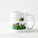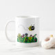 flys colorés d'abeille de bande dessinée au-dessus d'une correction lumineuse des fleurs