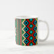 Enjoy our unique geometric mug with green and red accents.