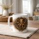 Designed as a wrap-around print, the mark is positioned to read naturally from the handle-out view, giving the mug a lived-in, intentional presence. The extended dust and ink halo allows the design to breathe on white ceramic without losing its weathered character.