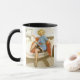 les petites filles Vintages et les automobiles classiques; une allumette faite au paradis des voitures. Cette tasse à ringard noir et blanc présente deux pinces vintages et du texte rouge (au centre).