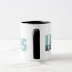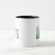 Life's A Beach Coffee Mug. Noir et bleu de plage avec étoiles de mer. Design de l'Emporium de Jenn.