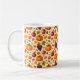 Citrouilles orange, raisins violets, pommes rouges, noix brunes et feuilles d'automne colorées font un beau thème de récolte sur cette tasse pour Thanksgiving.