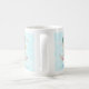 Une tasse à café personnalisée avec l'illustration charmante d'un petit lapin qui roule le long d'une montgolfière ornée d'un joli ruban rose, agrémentée de fleurs et de papillons.