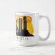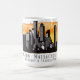 Mug café caractéristiques Boston Massachusetts ville silhouette skyline avec l'éclaboussure d'aquarelle coucher du soleil et coordonnées de latitude et longitude