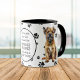 Un adorable chien de la Frontière Terrier est assis sur les deux côtés de cette tasse. Le texte entre les deux images dit "Le 8ème jour, Dieu a créé le TERRIER FRONTALIER et l'a appelé TRÈS BIEN". Les images de chien et la bannière blanche ovale contenant les champs de texte sont placées sur un arrière - plan blanc avec des empreintes de pattes noirs.