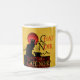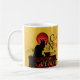 Coupe de café avec "Black Cat and Black Coffee" à base d'affiches classiques de Théophile Steinlen. Ce design présente son chat noir assis sur un mur en brique recouvert de lierre avec une grande tasse de café. Vapeur et coeurs sortant de la tasse de café et une pleine lune rouge vif dans l'arrière - plan.