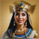 "Le réalisme de Cléopâtre VII : un portrait". Un rendu vivant de Cléopâtre VII la montre avec un nez proéminent, des yeux en amande et un menton fort. Ses cheveux, tressés et ornés d'or plumé, complètent son diadème royal en forme de vautour, symbolisant la pureté et la maternité, ainsi que le cycle éternel de la mort et de la renaissance. Des boucles d'oreilles perles et un collier complexe renforcent la présence de la reine avec un regard intelligent reflétant son charisme et son esprit légendaires.