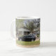 Une tasse à café avec une photo de véhicules de police.