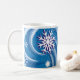Ce design présente un assortiment de flocons de neige tourbillonnant dans le vent. Un dossier bleu a été ajouté. Une couche de neige fine a été ajoutée pour le flair. Ce design est disponible sur différents styles et tailles. Disponible sur une tasse, une tasse de café ou un stein. fait un grand cadeau.