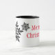 La tasse de café en céramique est montrée avec un Noël festif flocons de neige imprimé d'art avec Joyeux Noël en texte. Customisez cet objet ou achetez tel quel.