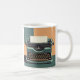Une machine à écrire vintage est représentée par une feuille de papier insérée, placée contre un arrière - plan géométrique contrasté de tons turquoises et pêche. Le style met l'accent sur les lignes épurées et une esthétique rétro.