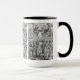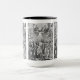 Dans cette gravure de ciel par Hieronymus [Jérôme] Wierx de c. 1600, l'accent est mis sur les Archanges. + En haut de l'image se trouve la Sainte Trinité avec les symboles des évangélistes (centre); la Bienheureuse Vierge Marie avec SS. Peter et Paul (à gauche); et SS. John le Baptiste, Stephen le ProtoMartyr, et Lawrence de Rome (à droite). La taille de ces chiffres n'est pas révélatrice de l'importance théologique. Au contraire, leur taille réduite est fonction de la composition en perspective qui indique une grande distance entre les groupes figuraux dans le plan d'image et met l'accent sur les Archanges comme point focal de l'oeuvre d'art. + Les Sept Archanges, leurs noms inscrits dans leurs halos, sont représentés avec leurs attributs. En lisant de gauche à droite, les Archanges sont les suivants : Saint Raphaël ("Dieu guérit") porte un pot d’apothicaire et tient la main de la jeunesse Tobias qui porte un poisson. Avec une salve à base d’intestin de poisson, St. Raphael guérit le père de Tobias de la cécité et sa future épouse de la possession d’un démon. Uriel (ou Ariel, "Dieu est ma lumière") brille une épée. Il aurait peut-être expulsé Adam et Eve du jardin d'Eden après la chute. Une flamme brûle à ses pieds. Saint Gabriel ("Force de Dieu") est habituellement représenté avec un spray de lys. Ici, cependant, il porte une lanterne qui rebondit la lumière d'un miroir de jasper. La lanterne symbolise la Parole de Dieu, et le miroir du jasper, un minéral aux occlusions qui prend néanmoins un éclat réfléchissant lorsqu’il est poli, symbolise notre compréhension erronée de la nature de Dieu. Au centre, un saint Michel haut vêtu d'armures ("Qui est comme Dieu ?") porte un étalon de bataille et une paume de victoire. Il écrase Lucifer sous le couvert d'un dragon. Sealtiel ("Prière pour Dieu"), ici les yeux levés, plie ses mains dans la prière devant sa poitrine. Jehudiel ("Justice de Dieu") porte une couronne et un fléau (équivalent céleste d’une carotte et d’un bâton). Et, enfin, Barachiel ("Bénédictions de Dieu") tient un pli de son manteau rempli de fleurs pour la diffusion ou la distribution. + La gravure a été inspirée par deux passages bibliques : Apoc. 1:4 et Psaume 137:1-2—qui apparaissent en latin sous l'image sur l'impression originale (non visible ici). + Fête conjointe de SS. Michael, Gabriel, et Raphael : 29 septembre + Crédit image (M 034) : Gravure sur la Renaissance nordique flamande antique de St. Michael et Archangels (Les Sept Archanges), par Hieronymus [Jérôme] Wierx, initialement publiée avec privilège par Piermans, Anvers, Belgique, c. 1600, du Metropolitan Museum of Art, The Elisha Whittelsey Collection, The Elisha Whittelsey Fund, 1951, 51.501.6402. Creative Commons CC0 1.0 Universal Public Domain Dedication.