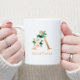 Mug Lettre d'or Monogramme A | Vert rose floral