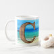 Mug Lettre initiale en bois C Beach Ocean Scene