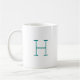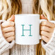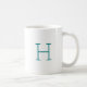 Ce design simple et minimaliste comprend une lettre initiale monogramme personnalisable en police de caractères rétro bleu turquoise. La lettre apparaît de part et d'autre de la tasse.