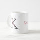 "Lettre K, Fleur de cerisier, Monogramme Nom du script Coffee Mug." Tasse féminine et moderne avec votre monogramme K avec un design de fleurs de cerisiers. Personnalisez votre nom en écriture manuscrite.