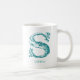 Tasse à café blanc personnalisable avec la lettre S en typographie turquoise unique. Ajoutez votre nom à l'aide de la fonction de personnalisation.
