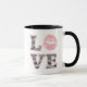 Caractéristiques de conception ce un ensemble en pastel de lèvres et d'AMOUR dans un motif rayé noir et blanc.