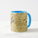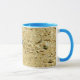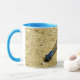 La libellule assise sur le sable, une ombre est visible sous le corps. Cet insecte, de l'ordre Odonata, a des ailes transparentes et de grands yeux. Le bleu vif du corps est ramassé dans la couleur la jante et la poignée de la tasse. Un grand cadeau pour l'entomologiste dans votre vie.